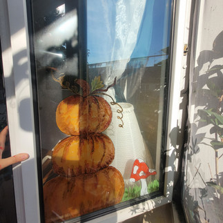 Attached, you’ll find some of my window artworks from across the seasons, including my two favorites with autumn patterns.